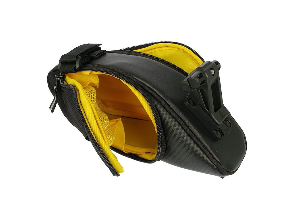 veľkoobjemová podsedlová taška s dvojitým bočným otváraním pre lepší prístup k obsahu