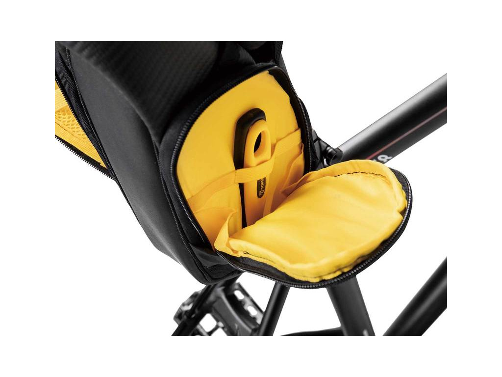 Podsedlová brašna, která pojme opravdu velké množství zásob. Dva boční panely na zip umožňují snadný přístup k veškerému převáženému obsahu.