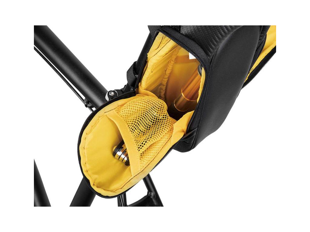 Podsedlová brašna, která pojme opravdu velké množství zásob. Dva boční panely na zip umožňují snadný přístup k veškerému převáženému obsahu.