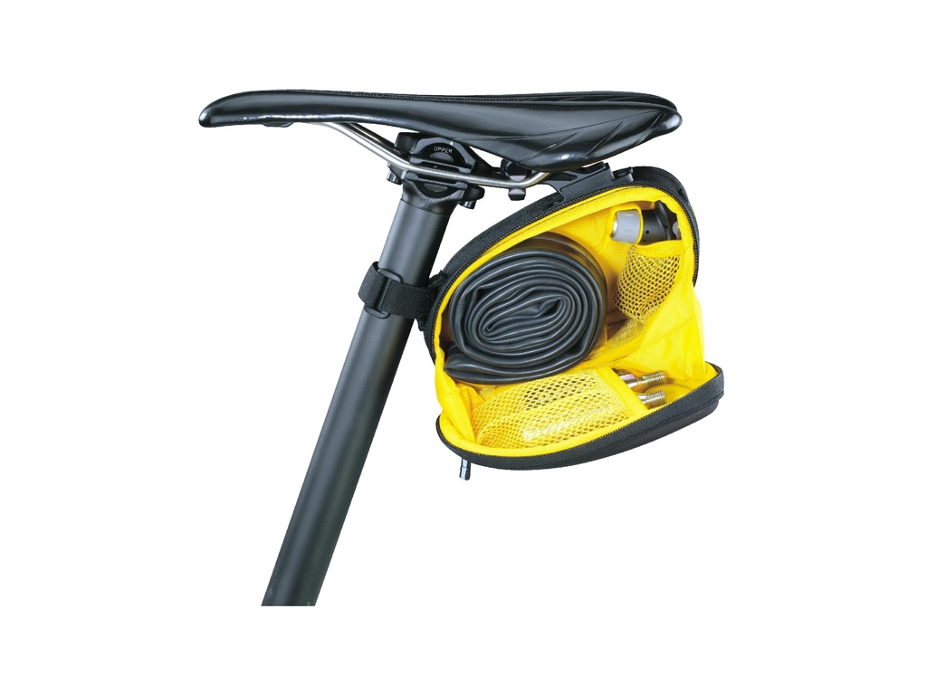 vystužená podsedlová taška s bočným otváraním pre lepší prístup k obsahu
