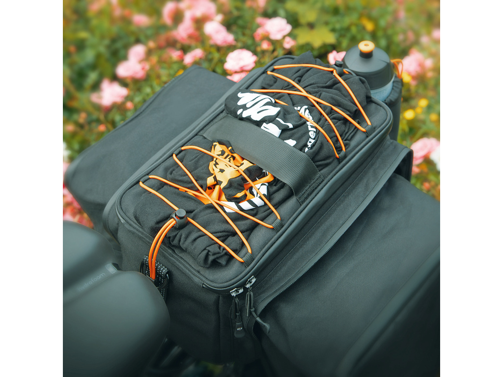 Spousta místa! Cyklistická brašna na nosič s rozšiřitelným úložným prostorem o objemu 8 litrů + 2x 9 litrů.