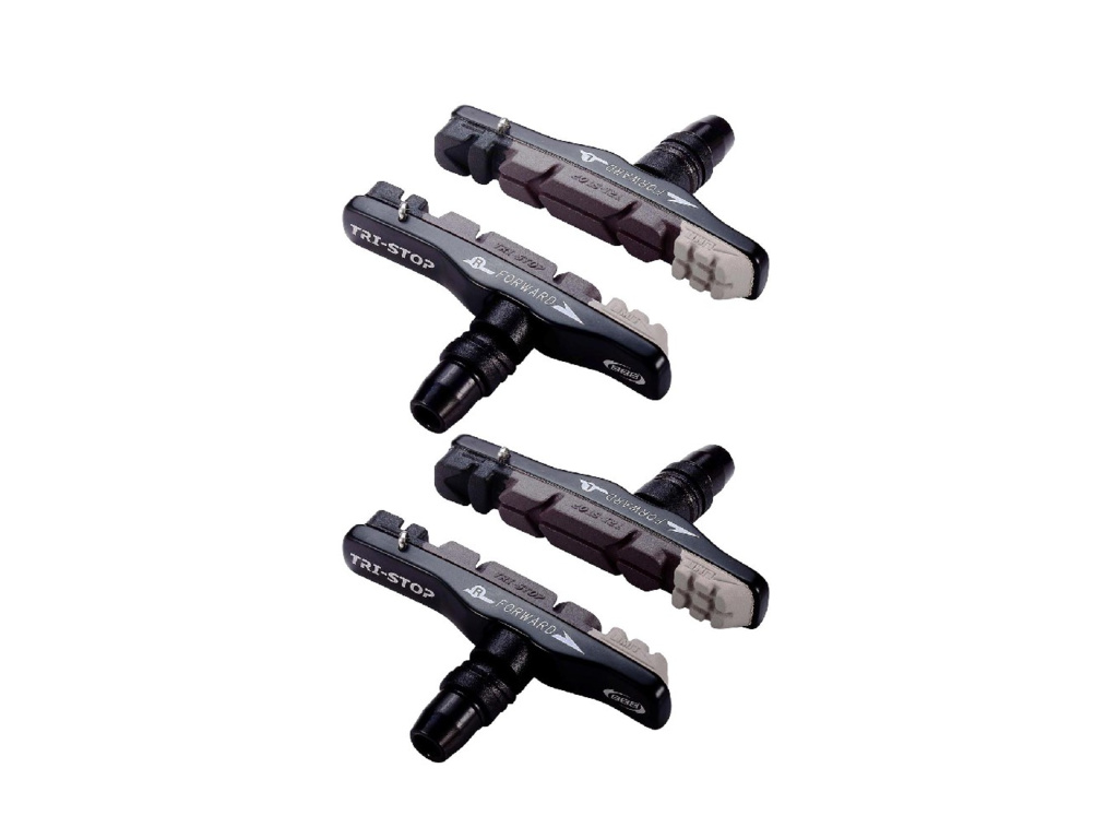 Kazetové Brzdové špalíky s vymeniteľnými čeľusťami, vhodné pre ráfikové brzdy. Veľmi dobrý odvod vody, vynikajúci brzdný účinok a žiadne vŕzganie. Kompatibilný s brzdami Shimano V-Set štyroch brzdových čeľustí