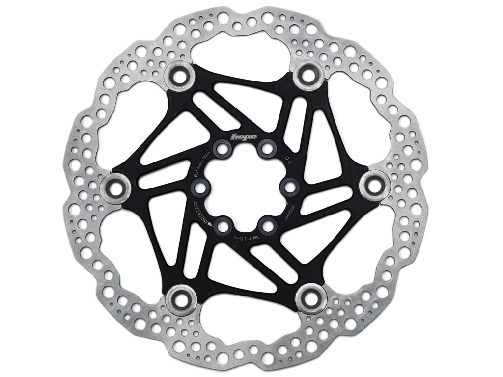 Inovovaná varianta osvědčených brzdových kotoučů Hope Floating. Varianta s uchycením na 6 děr, průměr kotouče 203 mm.