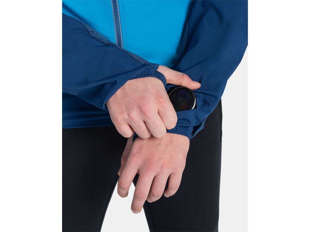 Viac namáhané častí, ako kapucňa so spevneným šiltom, prsia a ramená, sú vyrobené z husto tkaného vetruodolného materiálu. Na chrbte a v podpazuší je použitý priedušný sieťovaný materiál, ktorý odľahčuje hmotnosť bundy. Celková hmotnosť bundy je iba 120 gramov vo veľkosti M. Bundu ľahko zbalíte do vrecka alebo bežeckej vesty. Rukávy sú predĺžené a s manžetou na palec. Na ľavom rukáve je umiestnený otvor pre hodinky. Vysoký golier je z vnútornej strany vystlaný hebkým materiálom, ktorý nedráždi tvár. Predný zips je dvojcestný a poslúži na lepšie odvetrávanie. Voľnejší strih vás nebude obmedzovať v pohybe. Lemy rukávov a spodný lem krásne priliehajú. Samozrejmosťou pri produktoch Kilpi sú výrazné reflexné prvky.
