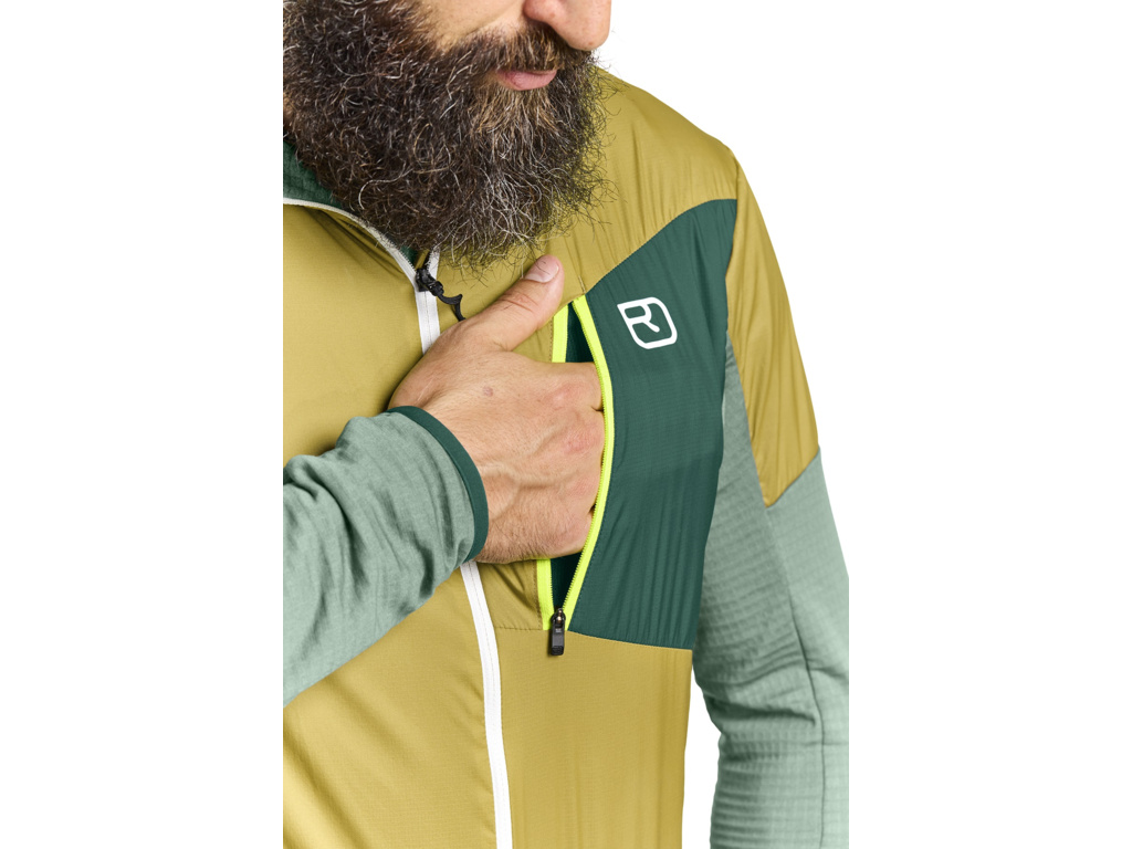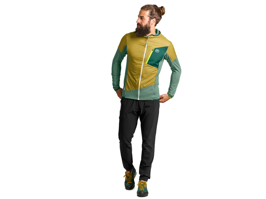 Hybridní technická pánská bunda pro aktivní pohyb, která kombinuje fleece s merino vlnou s větruodolnými vsadkami. Bunda ORTOVOX Ladiz Hybrid je plně připravena čelit všem výzvám vysokohorského prostředí.