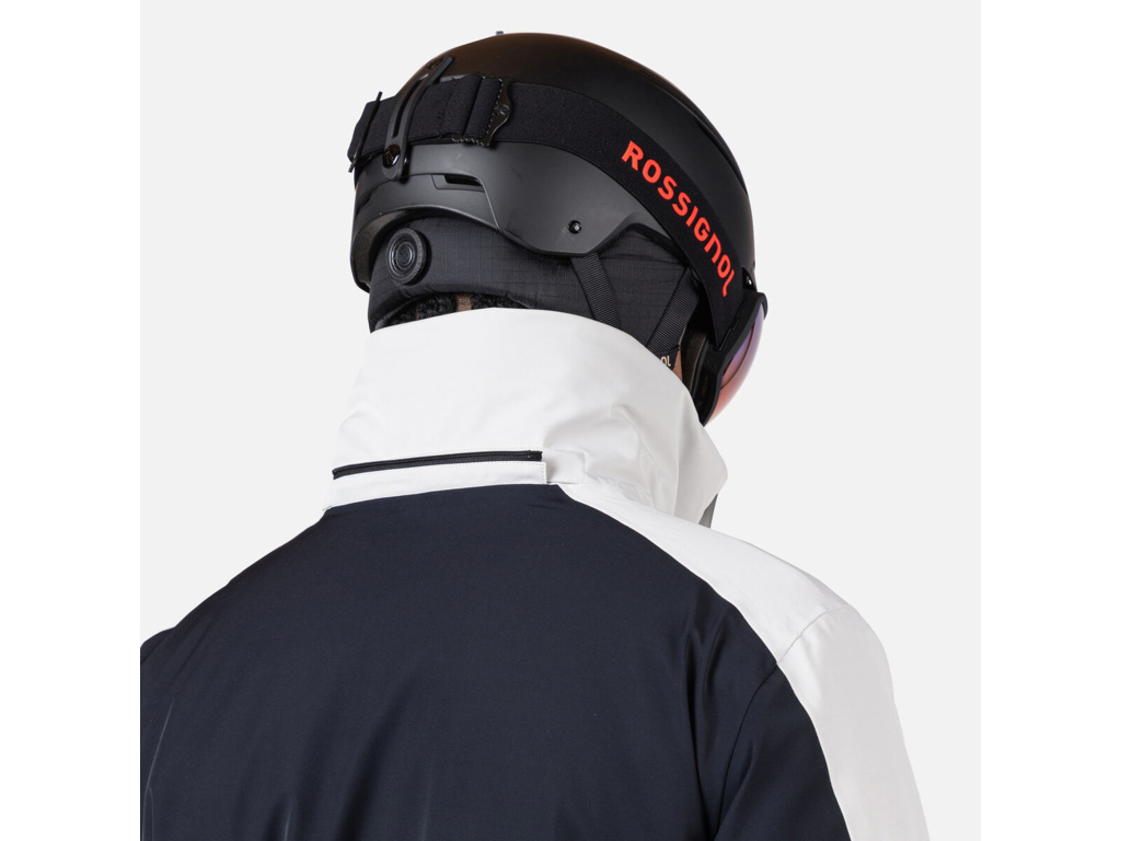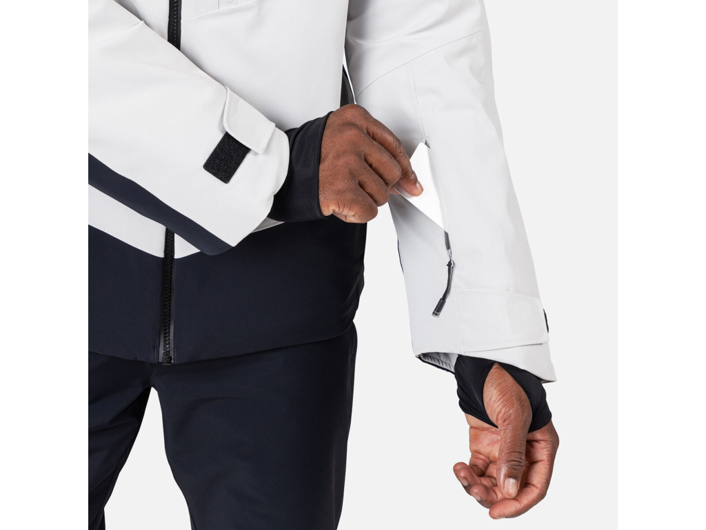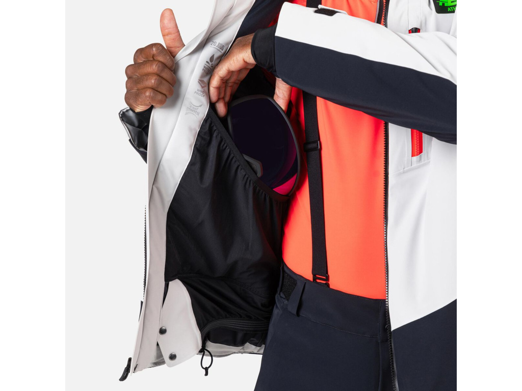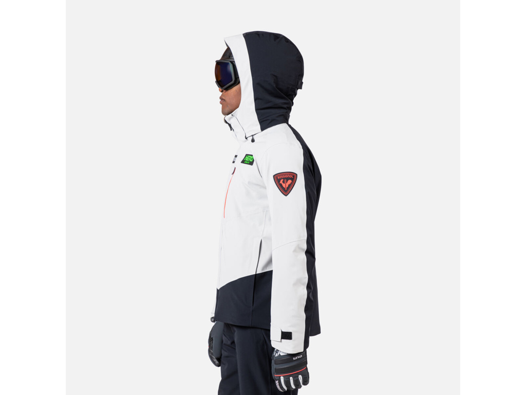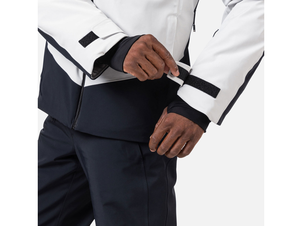 Detaily: Bunda má rovný střih s prostorem pro vrstvení. Praktičnost doplňují vestavěný sněhový pás, strečové manžety s poutky na palec, větrací otvory na zip a hadřík na brýle. Grafika Hero odráží poselství Rossignolu o rychlosti.