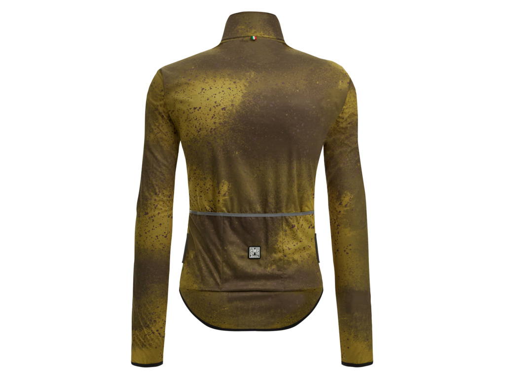 SANTINI Fango Verde je zbaliteľná vetrovka do vrecka, takže ju môžete mať stále pri sebe. Tento samoskladný systém sa používa ako obal produktu, čím sa znižuje množstvo plastového odpadu. Vďaka dvojvrstvovej membránovej tkanine Tovel Bio Zerowind®, slúži bunda ako ideálna ochrana pred vetrom a ľahkým dažďom. Priliehavý strih podporí vašu aerodynamiku a reflexné prvky zvýšia vašu viditeľnosť, a tým aj bezpečnosť. Predĺžená zadná strana ochráni vaše bedrá pred prechladnutím.