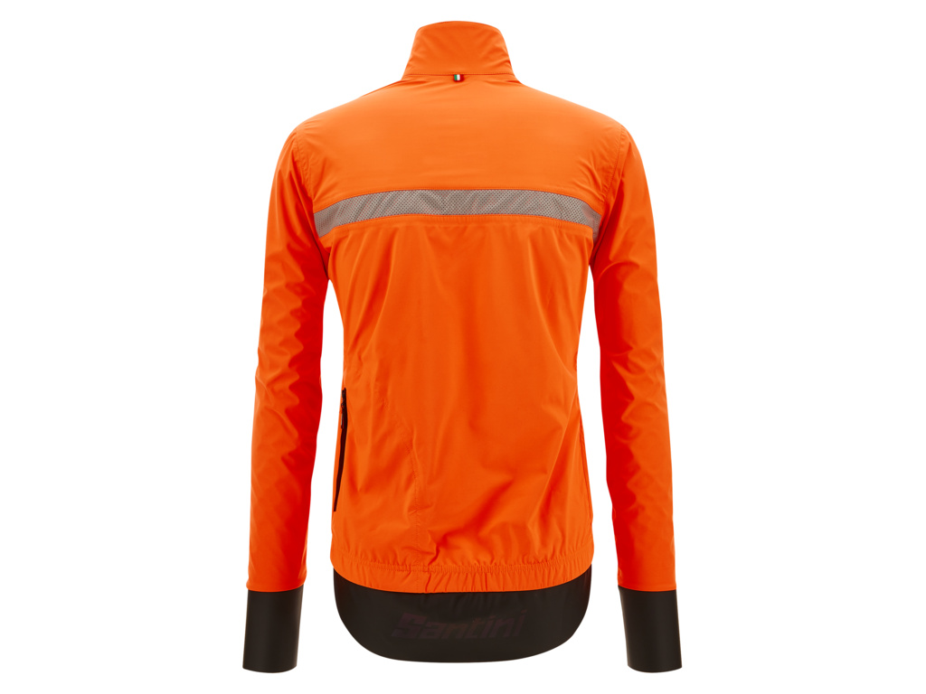 SANTINI Guard Neo Shell je inovatívna bunda do dažďa vyrobená z jedinečnej tkaniny POLARTEC® Neoshell s tkaným povrchom. Poskytuje dokonalú ochranu aj za najväčšieho lejaku, zároveň ponúka špičkovú priedušnosť. Bunda je vybavená plne podlepenými vnútornými švami a nepremokavým dvojitým zipsom. Ergonomicky tvarovaná zadná ochrana proti striekajúcej vode, vyrobená z fleecom podšitej tkaniny Superroubaix s plne vodeodolnou vonkajšou vrstvou z PU, odpudzuje vodu. K tomu reflexné prvky, vysoko reflexná značka Santini na ramene a bočné nepremokavé vrecko na zips pre bezpečné uloženie cenností.