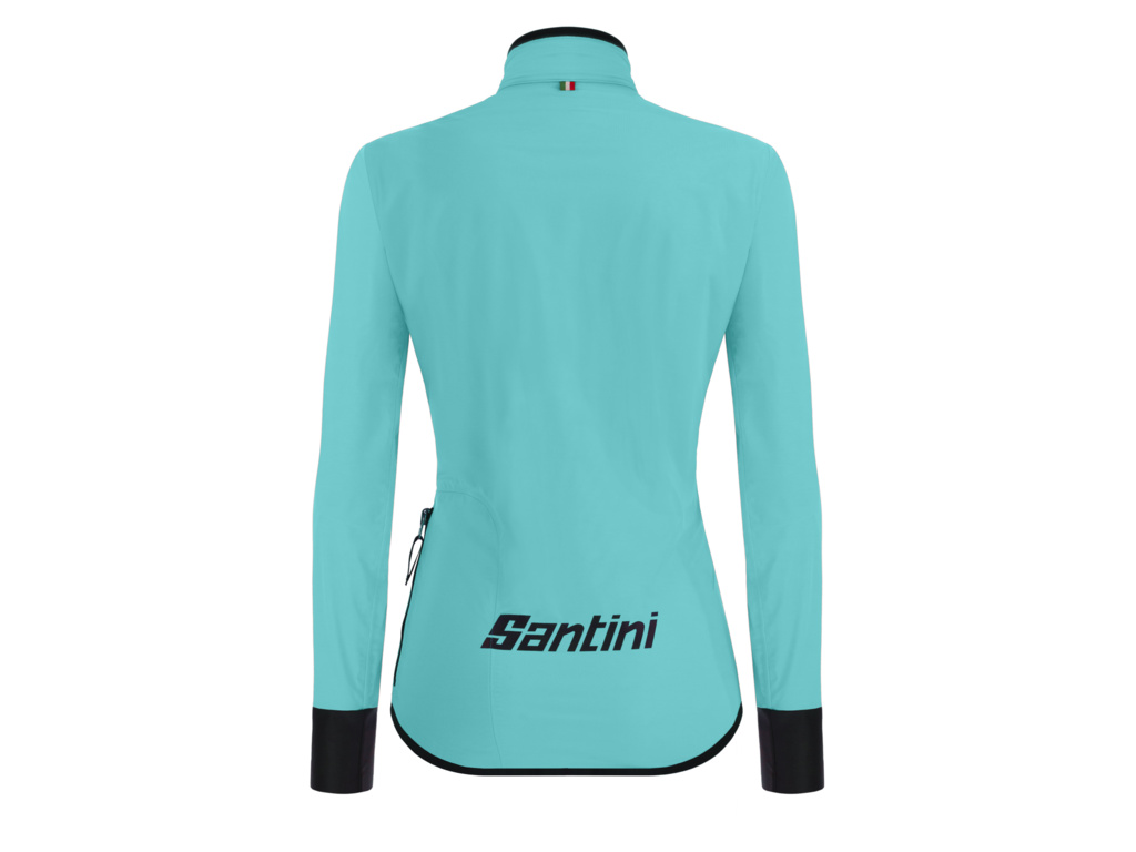 SANTINI Guard Nimbus Lady je dámska bunda vhodná do dažďa, miernych teplôt a vlhkých podmienok. Oceníte jej 100 % nepremokavosť vďaka dvojvrstvovej tkanine Grimpeur a tepelne zváraným švom pre najlepšiu ochranu v nepriaznivých podmienkach, ergonomický strih a ultraľahký a aerodynamický dizajn. Ergonomicky strihané nepremokavé manžety na rukávoch a superelastický dizajn robia z tejto bundy dokonalý pretekársky model. Navyše je skladná do vrecka, reflexné bodky na hrudi a reflexné logo Santini na chrbte zaisťujú maximálnu bezpečnosť za zníženej viditeľnosti a do bočného nepremokavého vrecka na zips môžete uložiť nevyhnutné drobnosti.