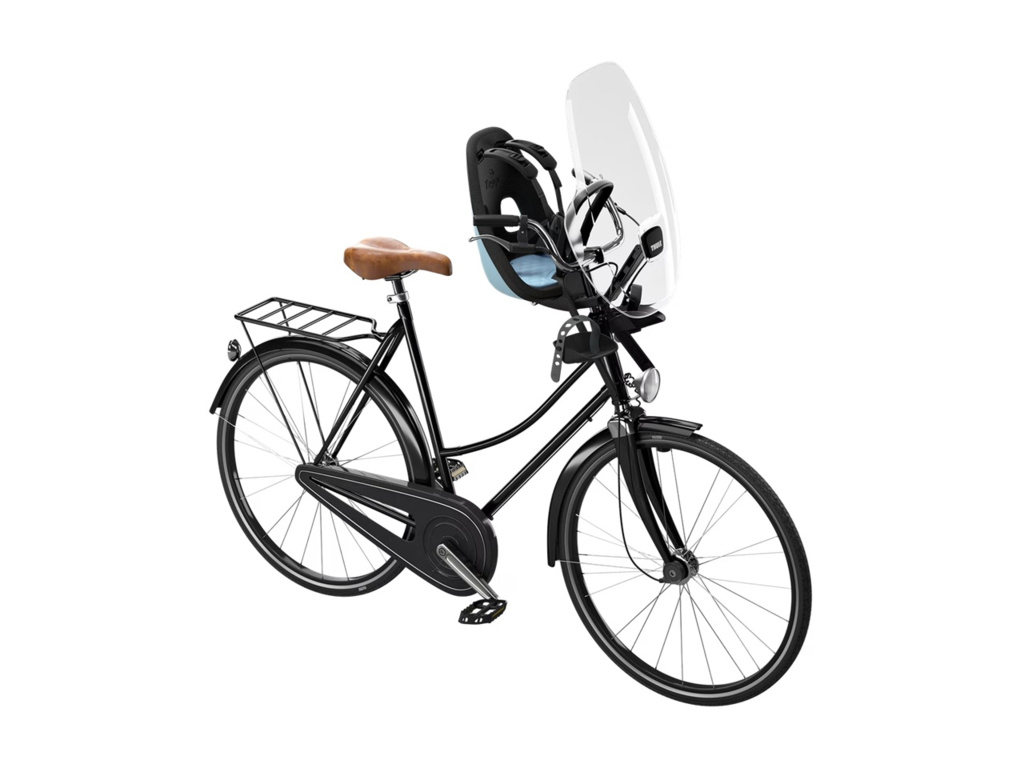 Čirý štít pro cyklosedačku Thule Yepp Mini, vyrobený z odolného a zcela průhledného materiálu, dítě během jízdy ochrání před větrem a hmyzem.