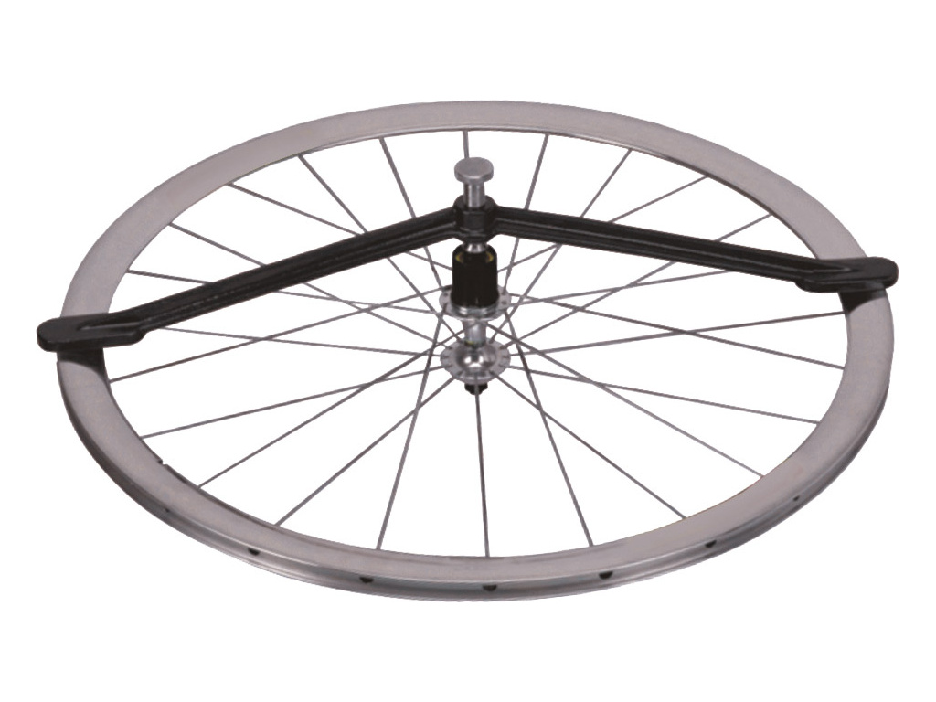 Teraz môžete ľahko zistiť osovú súmernosť kolesa a v prípade potreby upraviť napnutie lúčov na príslušnej strane kolesa a vycentrovať ráfik.