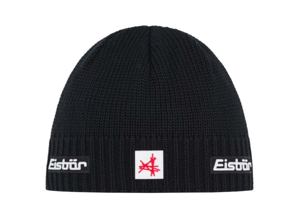 Klasická zimní čepice Eisbär Trop MÜ XL SA v jednoduchém, sportovně elegantním pleteném designu s logem Eisbär a Austria Ski Team.