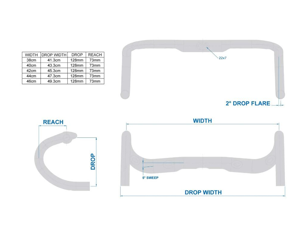 Športové / závodné Alu riadidlá s vnútorným vedením bowdenov, alu zliatina, rôzne šírky, ergonomická vrchná časť, kompatibilná s Di2.