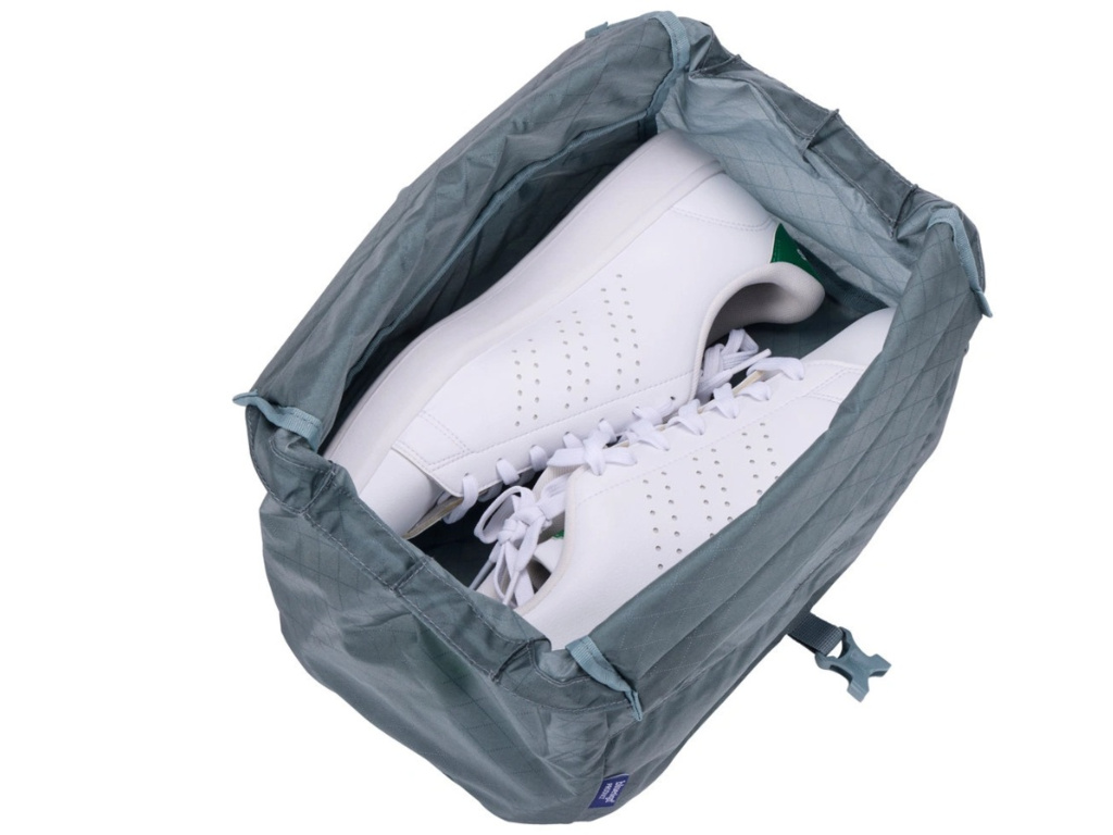 Taška na boty Thule udrží boty bezpečně uložené, což zabraňuje přenosu nečistot na čisté oblečení. Její úzký, prostorově úsporný design zajišťuje, že boty dobře padnou do příručního zavazadla.