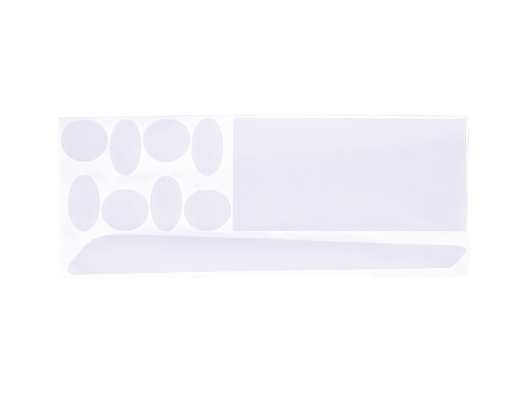 Sada obsahuje: 1x chránič reťaze, 1x obdĺžnik 80x152 mm, 4x nálepka 30 mm a 4x nálepka 20x40 mm.