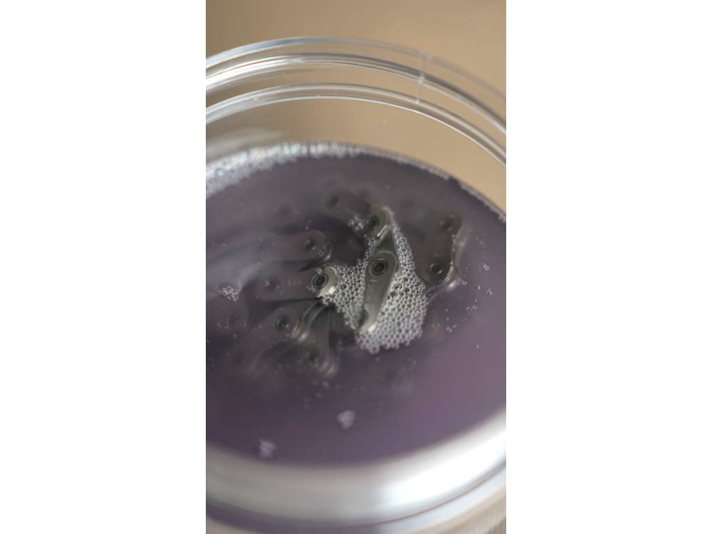 Možnosť 1: Nalejte do nádoby, ponorte reťaz, pretrepte 30 sekúnd, nechajte pôsobiť 5 minút a znova pretrepte 30 sekúnd.