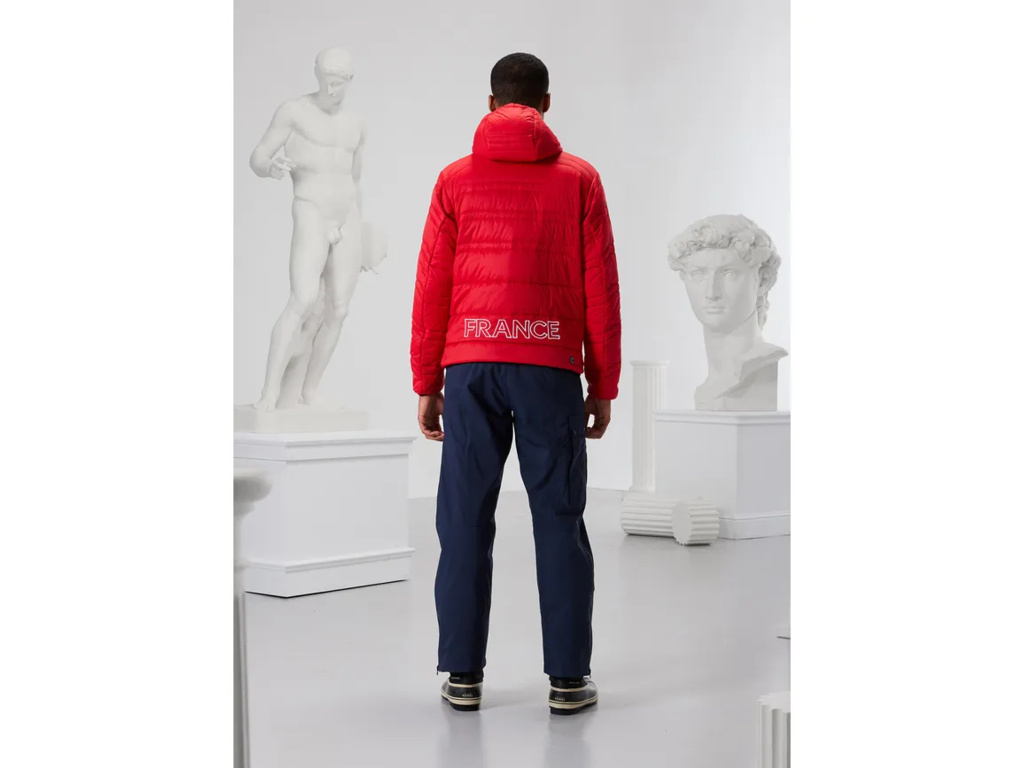 Pánska prešívaná bunda Colmar je vyrobená z ľahkého ripstop nylonu s vodoodpudivou úpravou a predstavuje vernú repliku modelu z oficiálnej kolekcie francúzskeho národného tímu alpského lyžovania pre sezónu FW23.