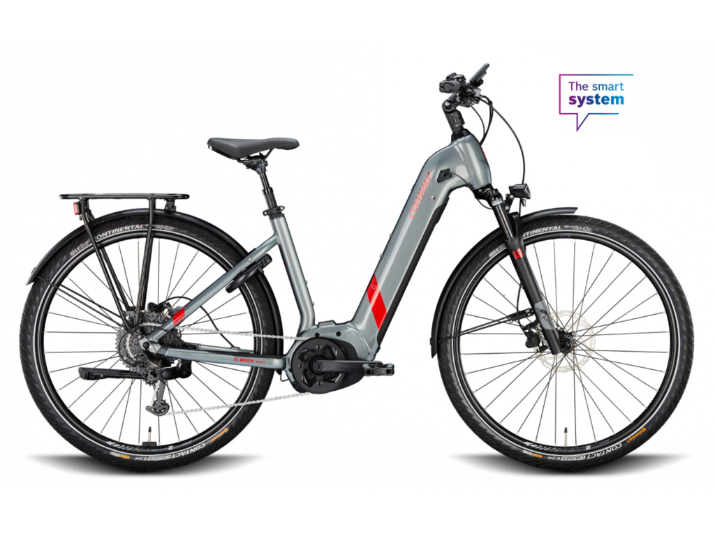 Elektrobicykel Conway Cairon T 2.0 Wave s nízkym rámom pre pohodlnú jazdu, stredovým motorom Bosch Performance Gen3 a integrovanou batériou s kapacitou 500 Wh. Vysoký štandard pre veľmi náročné každodenné viackilometrové jazdy. Súčasťou štandardnej výbavy je aj kvalitné LED osvetlenie, blatníky, stojan, zadný nosič a zámok zadného kolesa Abus.