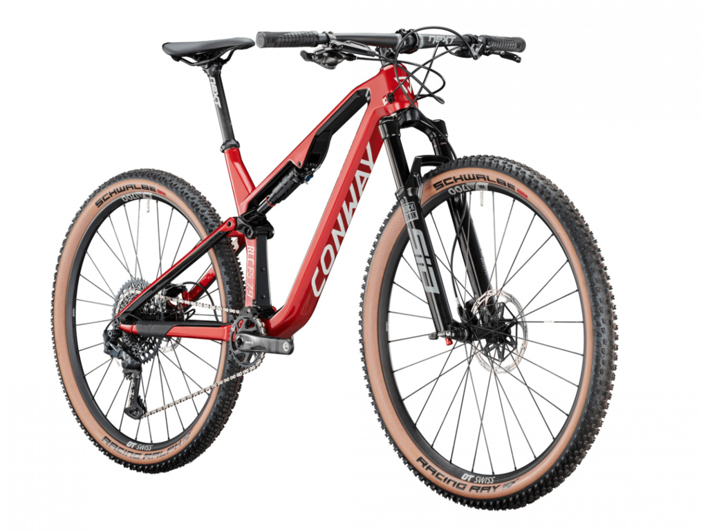 CONWAY RLC FX 7.9 je rýchly maratónsky celoodpružený bike, postavený na ľahkom celokarbónovom ráme s ostrou závodnou geometriou. Komponenty špičkového odpruženia Rock Shox SID zaisťujú predný zdvih 110 mm a zadný zdvih 100 mm. Za fantastickú cenu ponúka špičkové radenie Sram XX1 s 1x12 prevodmi, doplnené o karbónové kľuky X1, brzdy SRAM Level TL a plášte SCHWALBE Racing.