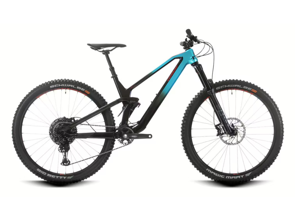 Celoodpružený bicykel so zdvihmi 150 mm, karbónovým rámom a odpružením RockShox, ktorý vám poskytne istotu v náročnom teréne. Vďaka sade Shimano Deore, výkonným brzdám TRP a plášťom Schwalbe zvládne výšľapy aj zjazdy bez kompromisov.