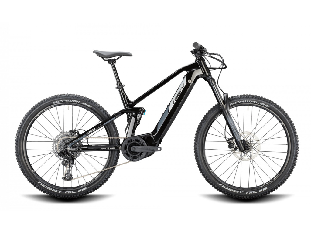 Celoodpružený elektrobicykel Conway Xyron S 2.7 s najvýkonnejším motorom Bosch CX 4. generácie a integrovanou batériou s kapacitou 625 Wh. Je tiež vybavený teleskopickou sedlovkou pre maximálny komfort jazdy a ovládateľnosť. Kombinácia špičkového spracovania, podarenej geometrie rámu, osvedčeného pohonu Bosch a prijateľnej ceny robí z celoodpružených modelov Conway Xyron jedny z najobľúbenejších e-bikov v našej ponuke. Stredový motor Bosch CX GEN4 má vysoký výkon 250 W a 85 Nm a jednoznačne patrí k špičke medzi stredovými motormi.Všetky údaje o jazde vrátane aktuálneho dojazdu a úrovne asistencie sa zobrazujú na farebnom, ľahko čitateľnom displeji Kiox v strede riadidiel. Integrovaná rámová batéria PowerTube ponúka dostatočnú kapacitu 625 Wh na náročnú jazdu na trailoch a v teréne.