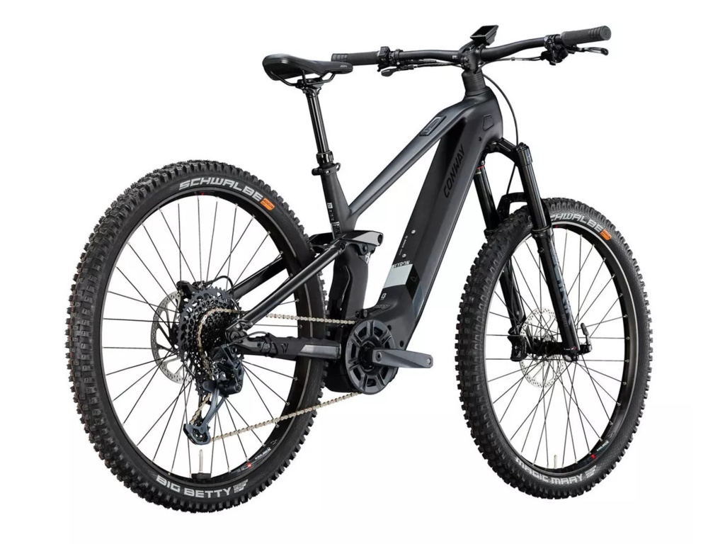 Celoodpružený elektrobicykel CONWAY Xyron S 7.9 Carbon s najvýkonnejším motorom Bosch CX 4. generácie a integrovanou batériou 750 Wh ponúka za skvelú cenu modernú trailovú geometriu, karbónový rám, radenie Sram s 12 prevodmi a výkonné štvorpiestkové brzdy TRP Slate E. Pre maximálny jazdný komfort a ovládateľnosť je vybavený aj teleskopickou sedlovkou. Vďaka spojeniu špičkového spracovania, podarenej rámovej geometrie, osvedčeného pohonu Bosch a priaznivej ceny patria celoodpružené modely CONWAY Xyron medzi najobľúbenejšie elektrobicykle.