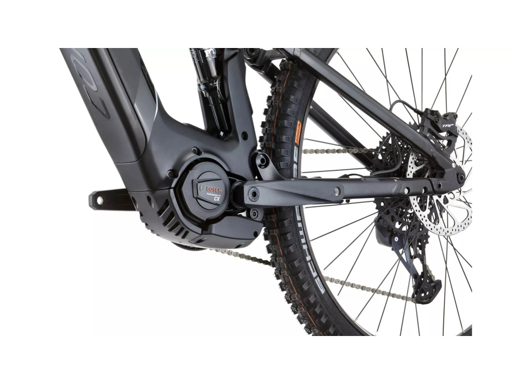 Stredový motor Bosch CX GEN4 disponuje vysokým výkonom 250W a 85 Nm patrí jednoznačne medzi špičku stredových motorov. Všetky údaje o jazde, vrátane aktuálneho dojazdu a stupňa asistencie sa zobrazujú na farebnom, výborne čitateľnom displeji Kiox 300, ktorý je umiestnený uprostred riadidiel. Integrovaná rámová batéria PowerTube ponúka dostatočnú kapacitu 750 Wh, pre dlhé jazdenie po trailoch aj v náročnom teréne.