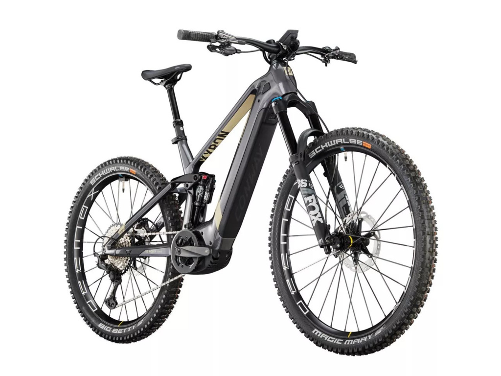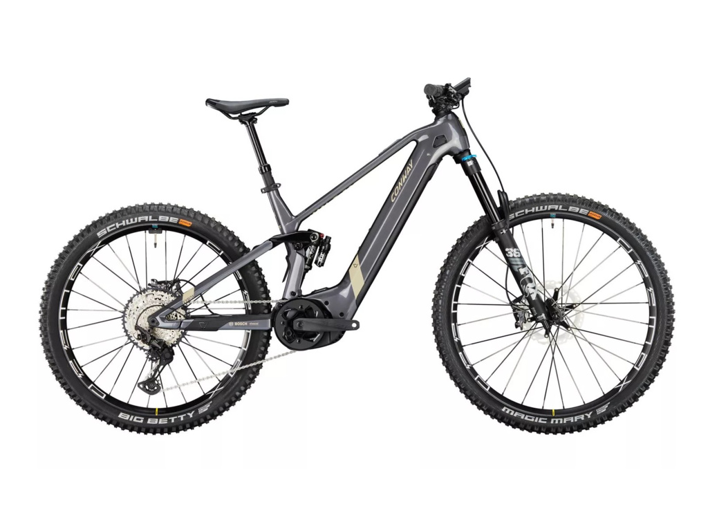 Celoodpružený elektrobicykel CONWAY Xyron S 7.9 Carbon s najvýkonnejším motorom Bosch CX 4. generácie a integrovanou batériou 750 Wh ponúka za skvelú cenu modernú trailovú geometriu, karbónový rám, radenie Sram s 12 prevodmi a výkonné štvorpiestkové brzdy TRP Slate E. Pre maximálny jazdný komfort a ovládateľnosť je vybavený aj teleskopickou sedlovkou. Vďaka spojeniu špičkového spracovania, podarenej rámovej geometrie, osvedčeného pohonu Bosch a priaznivej ceny patria celoodpružené modely CONWAY Xyron medzi najobľúbenejšie elektrobicykle.