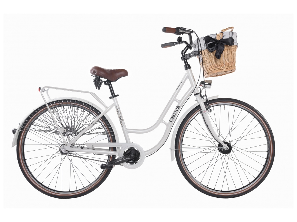 Krásny mestský bicykel Cossack Classic s ľahkým hliníkovým rámom a 3-rýchlostným zadným nábojom. Bicykel je tiež vybavený kvalitným predným a zadným osvetlením, dynamom v prednom náboji, košíkom na riadidlách, blatníkmi a nosičom.