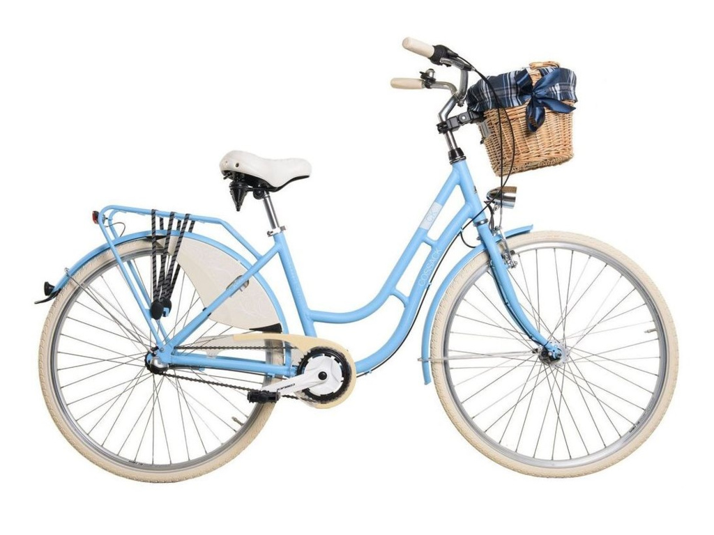 Krásny mestský bicykel Cossack Classic s ľahkým hliníkovým rámom a 3-rýchlostným zadným nábojom. Bicykel je tiež vybavený kvalitným predným a zadným osvetlením, dynamom v prednom náboji, košíkom na riadidlách, blatníkmi a nosičom.