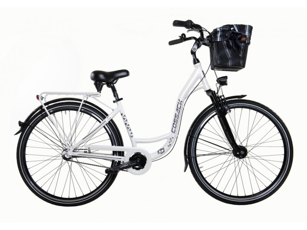Mestský bicykel Cossack s ľahkým hliníkovým rámom, 26-palcovými kolesami, odpruženou vidlicou a 3-rýchlostným zadným nábojom Shimano Nexus. Bicykel je tiež vybavený kvalitným predným a zadným osvetlením, dynamom v prednom náboji, košíkom na riadidlác