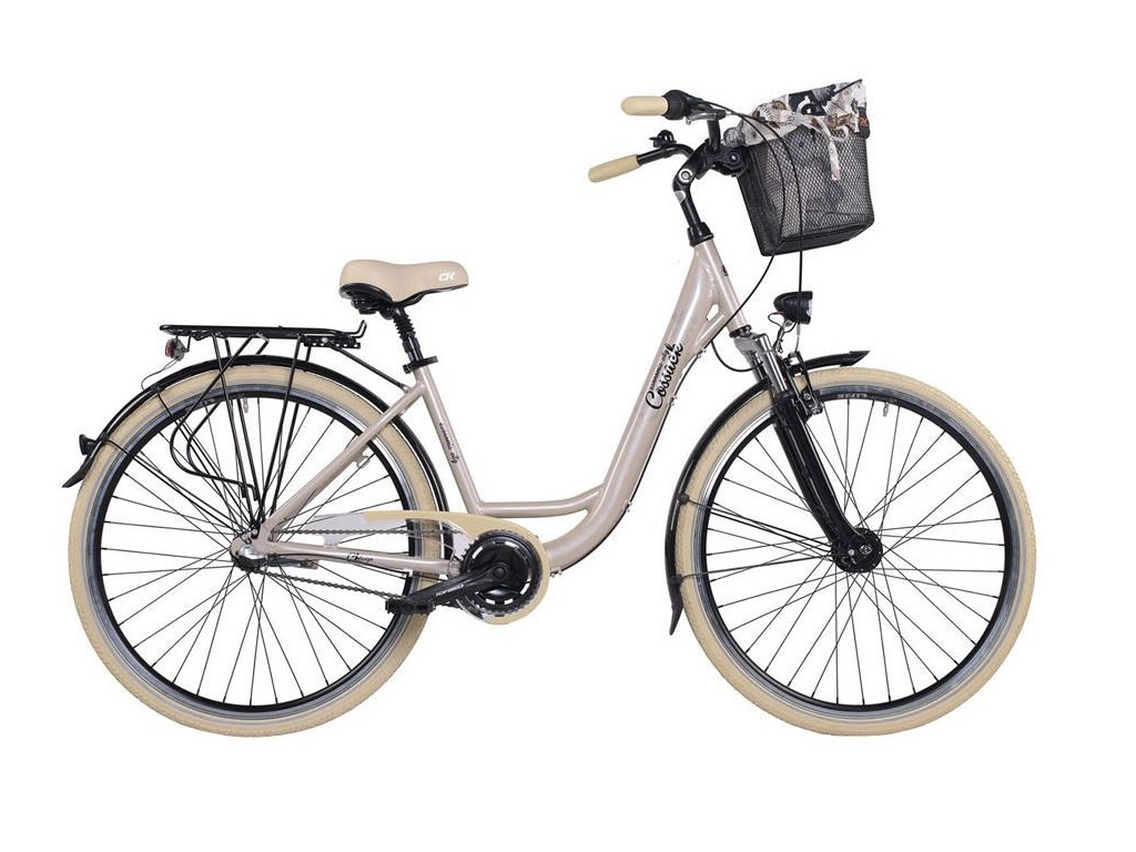 Dámsky mestský bicykel Cossack s ľahkým hliníkovým rámom, odpruženou vidlicou a 3-rýchlostným zadným nábojom. Bicykel je tiež vybavený kvalitným predným a zadným osvetlením, dynamom v prednom náboji, košíkom na riadidlách, blatníkmi a nosičom.