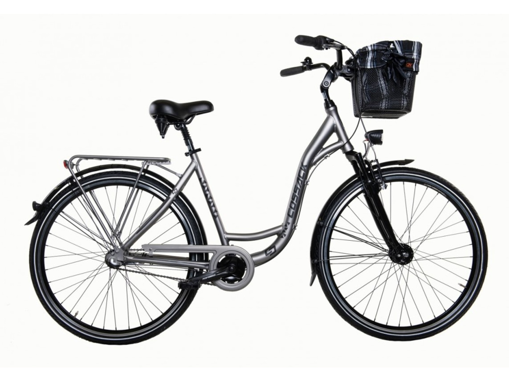 Mestský bicykel Cossack s ľahkým hliníkovým rámom, 28-palcovými kolesami, odpruženou vidlicou a 3-rýchlostným zadným nábojom Shimano Nexus. Bicykel je tiež vybavený kvalitným predným a zadným osvetlením, dynamom v prednom náboji, košíkom na riadidlác
