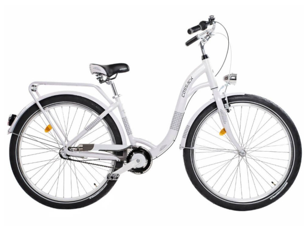 Dobre vybavený mestský bicykel Cossack Exclusive pre mužov a dámy. Ľahký hliníkový rám s nízkym stúpaním je vybavený hliníkovou pevnou vidlicou, 3-rýchlostným zadným nábojom Shimano Nexus a kvalitnými komponentmi. Je tiež vybavený vysokokvalitným osv