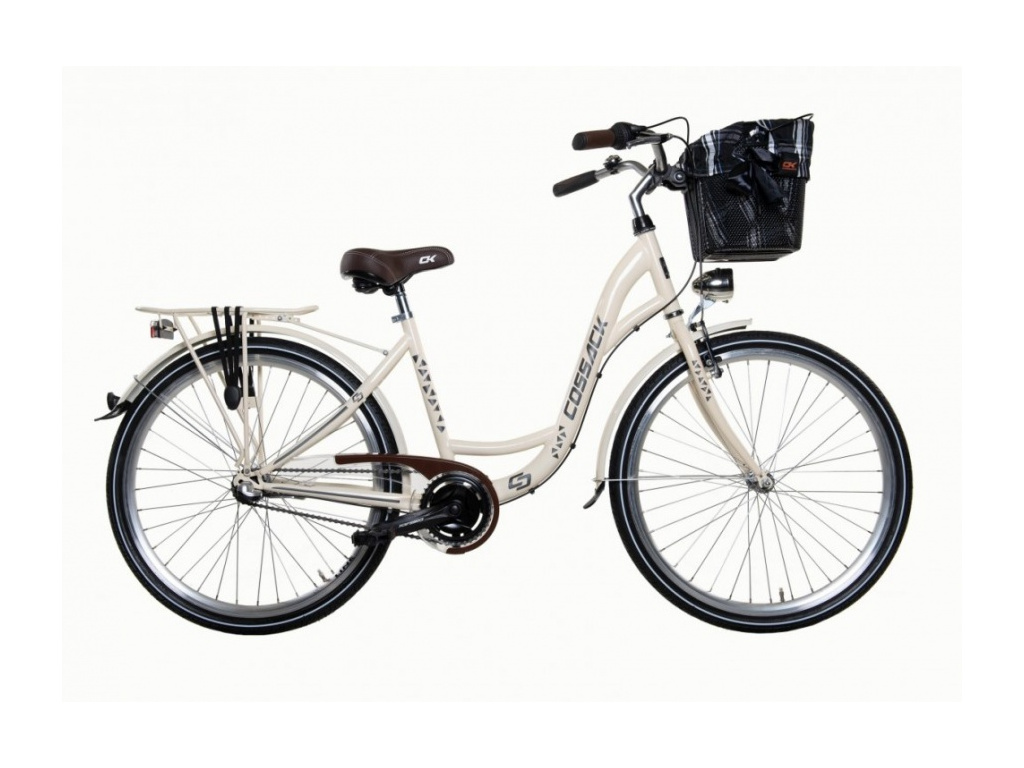 Cossack Luna 26 je mestský bicykel s 3-rýchlostným zadným nábojom Shimano Nexus a atraktívnym dizajnom. Štandardná výbava zahŕňa predné a zadné osvetlenie, blatníky, košík na riadidlách a zadný nosič. Bicykel má oceľový rám, 26-palcové kolesá a