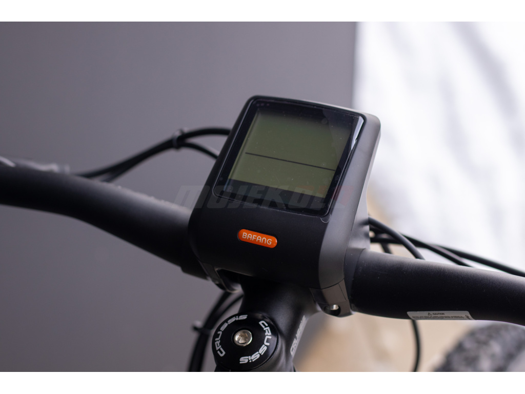 - Extra: Motor BAFANG MAX drive (M400), středový, 250W (max 500W), 80 Nm, baterie Li-Ion 36V / 468 Wh (13 Ah), černobílý LCD displej, 5 stupňů asistence, nabíječka 2A