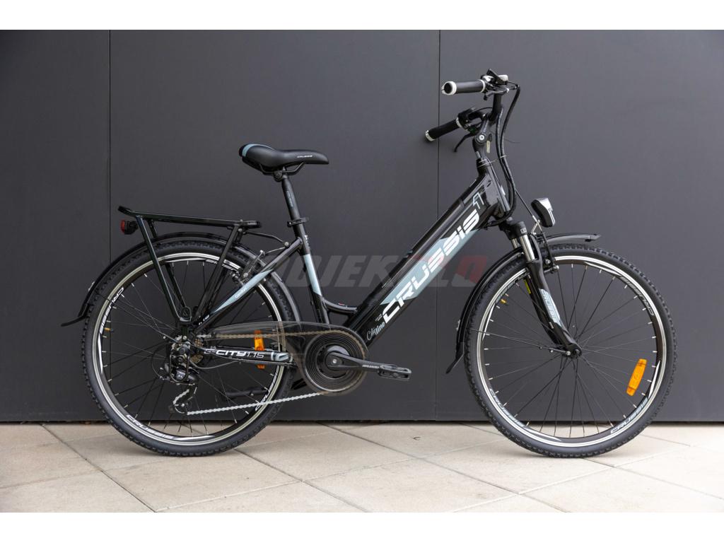 Mestský elektrobicykel Crussis e-City 1.15-S s motorom Bafang v zadnom náboji a integrovanou batériou s kapacitou 630 Wh, vhodný na jazdu v meste aj v teréne. Hliníkový rám s nízko položenou rúrkou umožňuje pohodlné nastupovanie a jednoduché vystupov