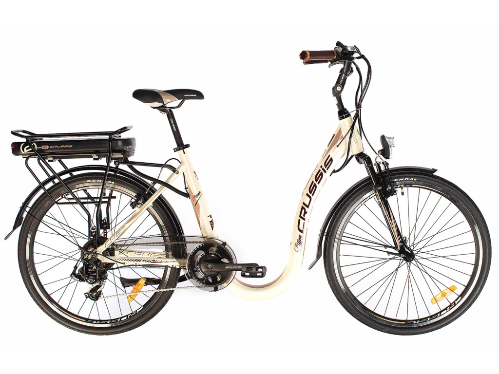 Crussis e-City 2.4 je elektrobicykel s veľmi nízkym vstupným zaťažením, vhodný na jazdu v meste aj na vidieku. Hliníkový rám so špecifickým dizajnom umožňuje veľmi pohodlné nastupovanie a jednoduché vystupovanie. Bicykel je poháňaný motorom BAFANG v