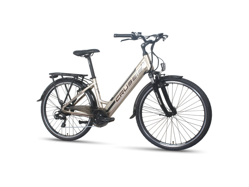 Městské elektrokolo Crussis e-Country 1.12 s motorem Bafang v zadním náboji a s integrovanou baterií 468 Wh, vhodné pro jízdu po městě i na vesnici. Nespornou výhodou je rám s nízko položenou trubkou, pro co nejsnažší nasedání a sesedání z kola. Mezi standardní výbavu modelu e-Country 1.12 patří přední i zadní osvětlení, stojánek, zadní nosič a blatníky.