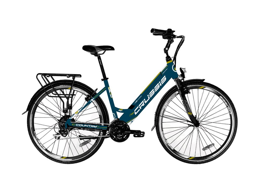Crussis e-Country 1.9 je mestský elektrobicykel vhodný na jazdu po meste, na vidieku aj mimo neho. Hliníkový rám s nízko posadenou rámovou trubkou a novo integrovanou batériou umožňuje pohodlnú montáž a jednoduchú demontáž. Bicykel je poháňaný motorom BAFANG v zadnom náboji a batériou s kapacitou 468 Wh. Nastaviteľný predstavec umožňuje nastaviť e-bicykel tak, aby sa jazdec cítil čo najpohodlnejšie. Nosnosť bicykla je 120 kg. Štandardná výbava bicykla zahŕňa osvetlenie, blatníky a zadný nosič. Elektrobicykel je poháňaný 250W (max. 500W) motorom BAFANG v zadnom náboji bicykla. Vďaka batérii s kapacitou 13 Ah/468 Wh, ktorá je umiestnená v ráme, je dojazd elektrobicykla 60 až 110 km v závislosti od zvolenej úrovne asistencie, hmotnosti jazdca a profilu trasy. Asistencia sa ovláda pomocou ovládača na riadidlách na priehľadnom LED paneli.