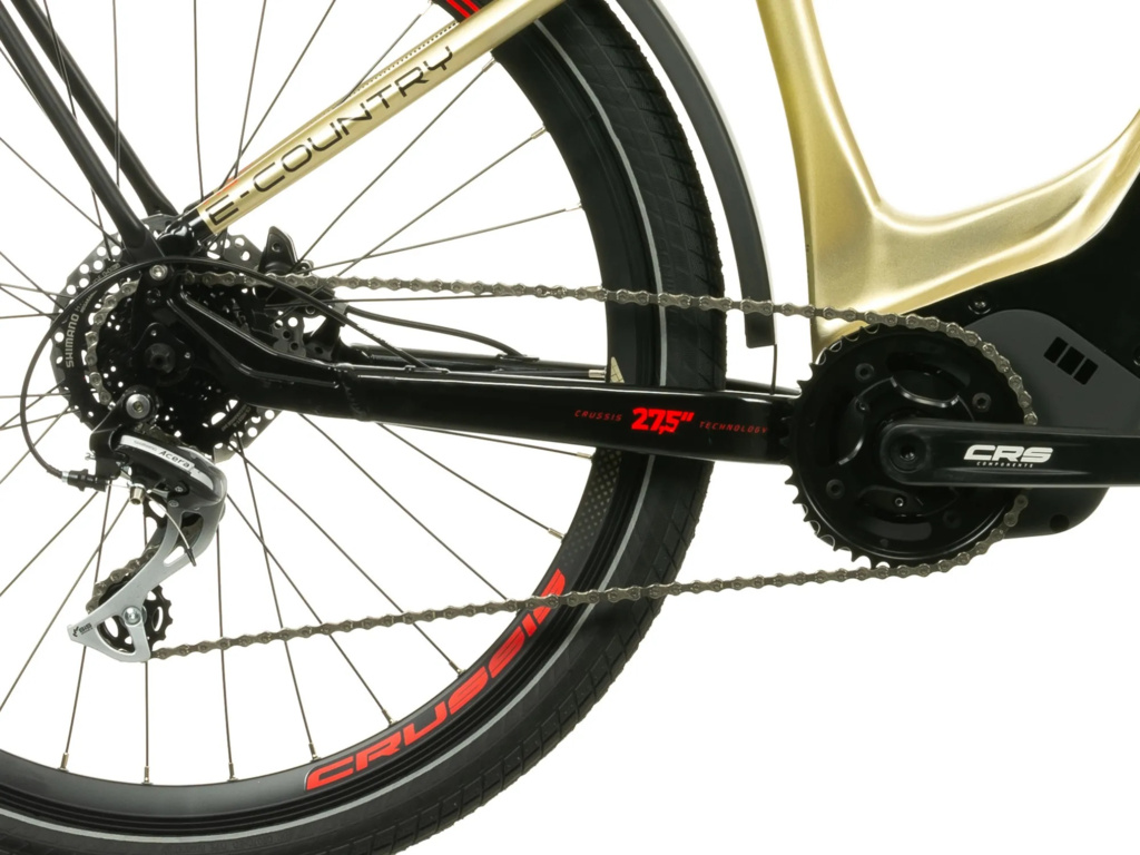 Městské elektrokolo Crussis e-Country 7.9-M se středovým motorem Panasonic GX Power Plus a s integrovanou baterií 720 Wh, vhodné pro jízdu po městě i na vesnici. Nespornou výhodou je rám s nízko položenou trubkou, pro co nejsnažší nasedání a sesedání z kola. Mezi standardní výbavu elegantního modelu e-Country 7.9-M patří zadní nosič a blatníky.
