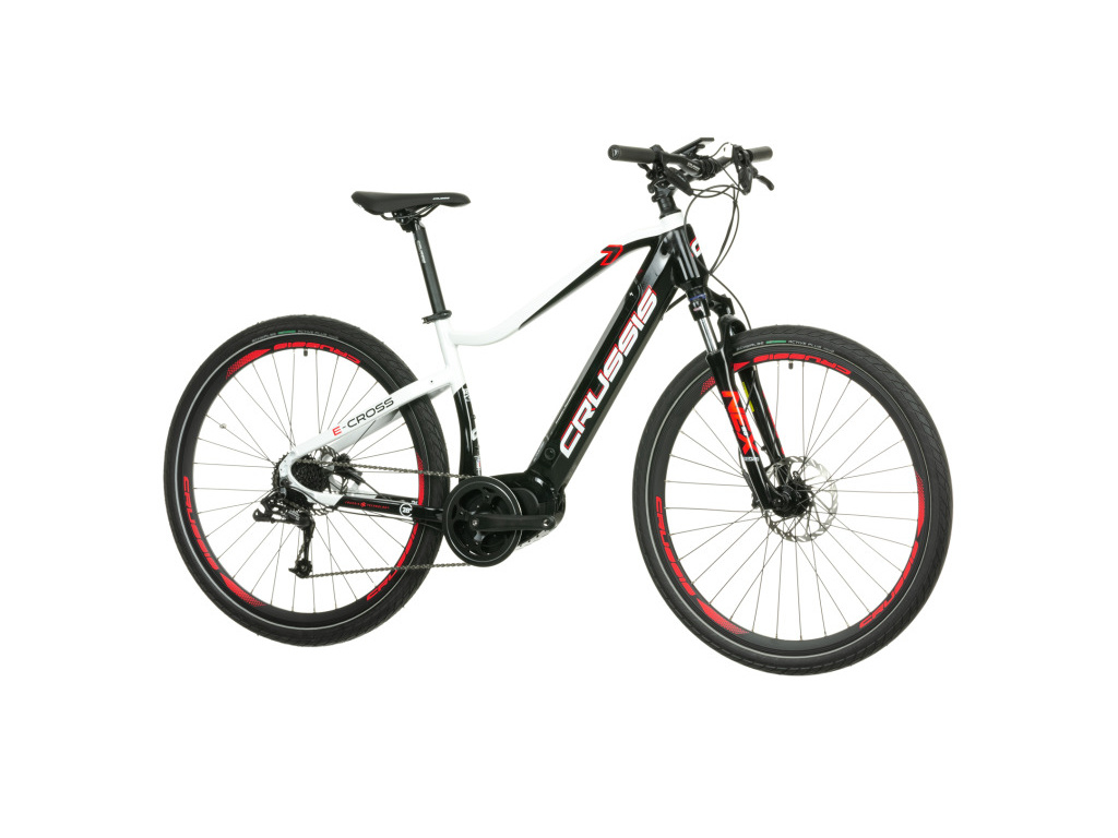 Krosové elektrokolo Crussis e-Cross 7.8 se středovým motorem Bafang M400 a s integrovanou baterií 522 Wh, vhodné pro vyjížďky po silnicích a zpevněných i nezpevněných cyklotrasách.