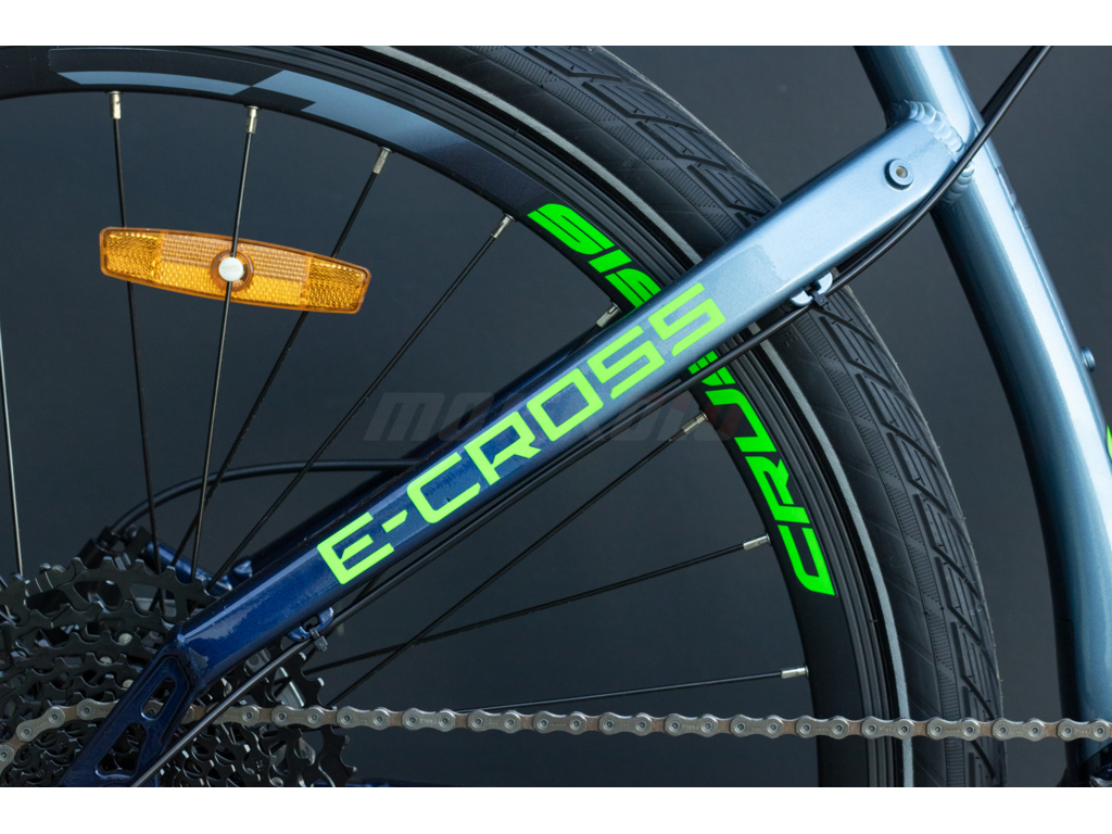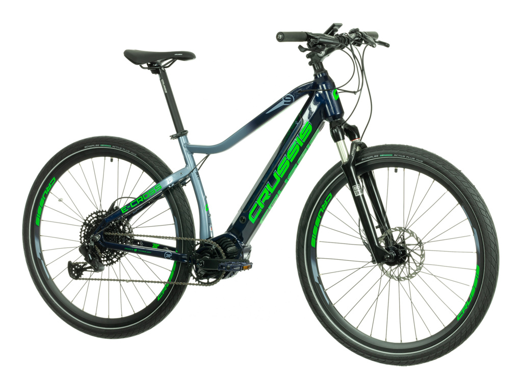 Pánsky elektrobicykel Crussis e-Cross 9.7-S s výkonným stredovým motorom Bafang M500 a batériou s kapacitou 630 Wh. Je vybavený prémiovou vzduchovou vidlicou Rock Shox Paragon Gold RL a komponentmi Sram SX Eagle s 12 prevodmi.