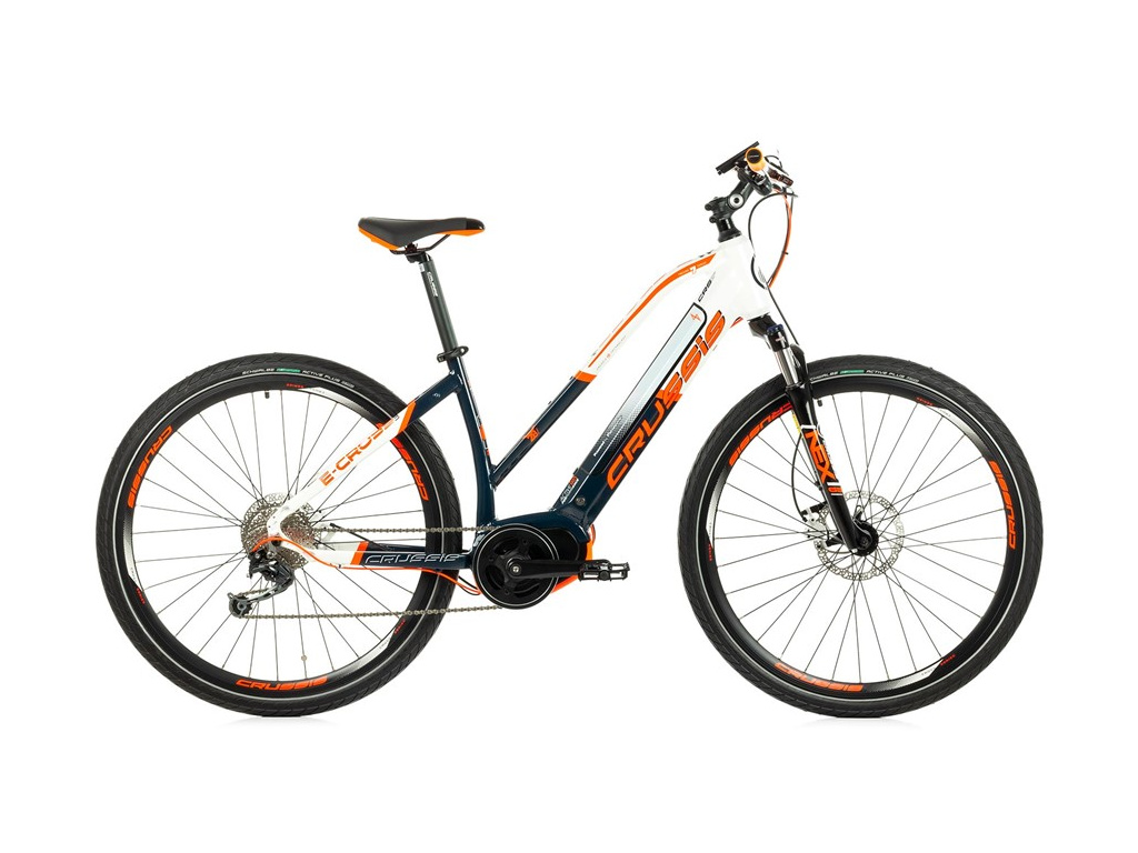 Crussis e-Cross 7.5-S Lady je dámsky elektrobicykel s hliníkovým rámom, pohodlnou geometriou a 28" kolesami. Poháňa ho stredový motor Bafang M400 a čiastočne integrovaná rámová batéria s kapacitou 630 Wh. Crussis e-Cross 7.5-S Lady je tiež vybavený odpruženou prednou vidlicou s uzamykaním, spoľahlivými hydraulickými kotúčovými brzdami Tektro a 9-stupňovým radením Shimano. Maximálny dojazd modelu e-Cross 7.5-S Lady s batériou s kapacitou 17,5 Ah/630 Wh je až 140 km v závislosti od profilu trasy a spôsobu využívania asistencie. Počas jazdy si môžete vybrať z 5 úrovní asistencie a na riadidlách je umiestnený prehľadný farebný displej LCD s pripojením USB, ktorý zobrazuje všetky údaje o jazde.