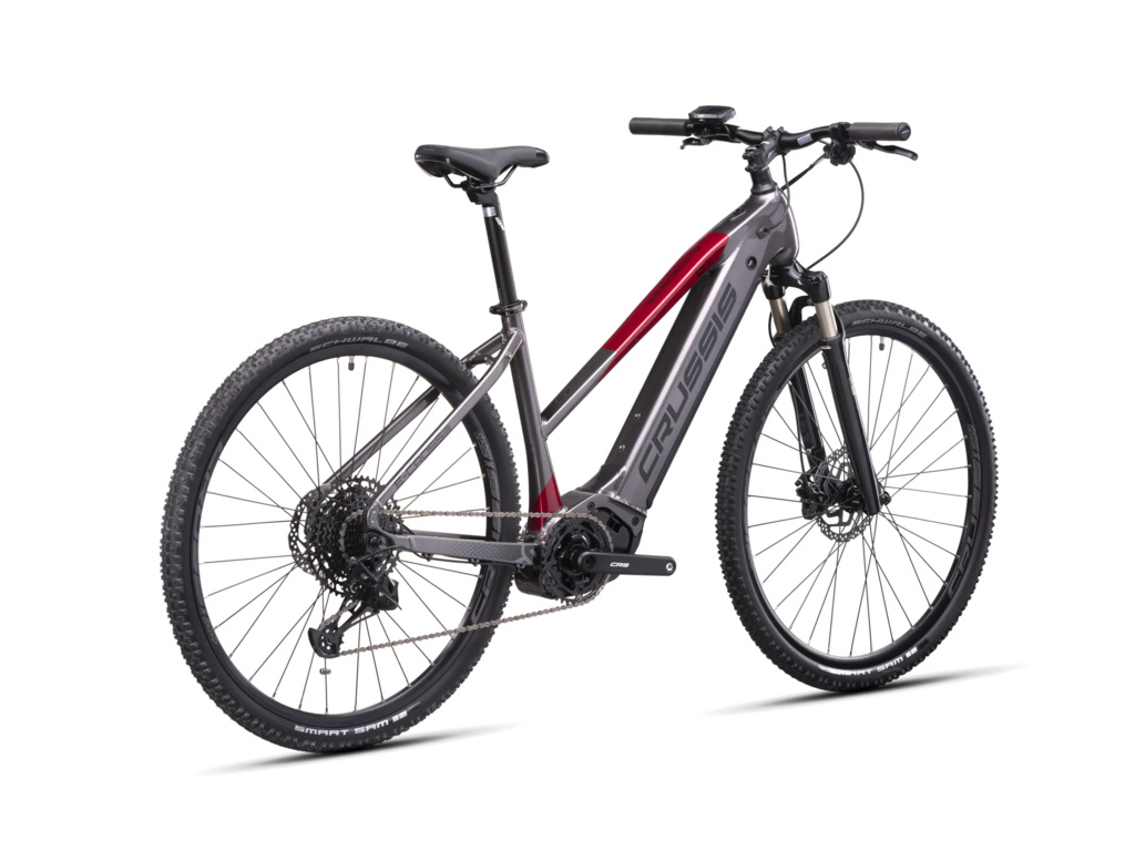 Krosový elektrobicykel CRUSSIS e-Cross Low 9.10 ponúka rám so zníženou hornou rámovou trubkou, výkonný motor Panasonic GX Ultimate a batériu s kapacitou 720 Wh, ktorá poskytuje dojazd až 170 km.
