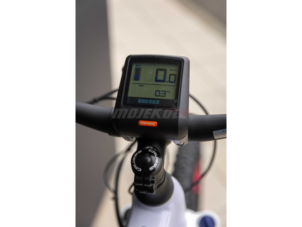- Extra: Motor BAFANG MAX drive (M400), středový, 250W (max 500W), 80 Nm, baterie Li-Ion 36V / 468 Wh (13 Ah), černobílý LCD displej, 5 stupňů asistence, nabíječka 2A