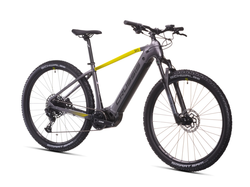 CRUSSIS e-Largo 9.11 s batériou 894 Wh je výkonný model horského elektrobicykla určený pre jazdcov, ktorí chcú spoľahlivý výkon a maximálny dojazd. Rám z hliníkovej zliatiny ALU 6061 s geometriou pre 29" kolesá ponúka vyvážený posed a isté ovládanie aj pri vyššej rýchlosti. Vzduchová vidlica RockShox Judy Silver TK Solo Air so zdvihom 100 mm účinne tlmí nárazy a pomáha udržiavať kontrolu na rozbitých úsekoch.