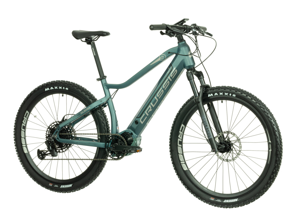 Dámske elektrobicykel CRUSSIS ONE-Guera 9.7 so zníženou hornou rámovou rúrkou pre pohodlný výstup a nástup je osadený výkonným stredovým motorom Bafang M500 s krútiacim momentom 95 Nm a plne integrovanou batériou 630 Wh. Hliníkový rám je doladený uzamykateľnou vidlicou z riadidiel ROCKSHOX Judy Silver, radením Sram SX Eagle s 12 prevodmi a spoľahlivými hydraulickými kotúčovými brzdami SHIMANO Deore BR-MT410 alebo SRAM Level. Aj ostatné príslušenstvo, vrátane LCD panelu, ktorý zobrazuje nielen informácie o zvolenom stupni asistencie, poteší všetky športovejšie zamerané cyklistky.