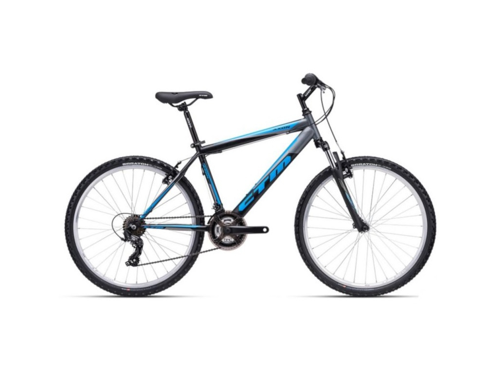 CTM Axon je horský bicykel pre nenáročných jazdcov. Oceľový rám je vybavený odpruženou vidlicou Suntour, komponentmi Shimano s prevodmi 3x7 a ráfikovými brzdami Alhonga.