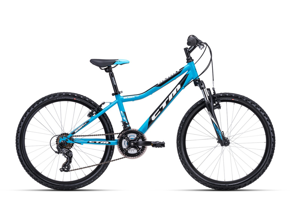 CTM Berry je štýlový detský bicykel vhodný pre deti s telesnou výškou 125 až 145 cm. Bicykel má oceľový rám, odpruženú vidlicu Suntour a je vybavený prevodmi 3x6.